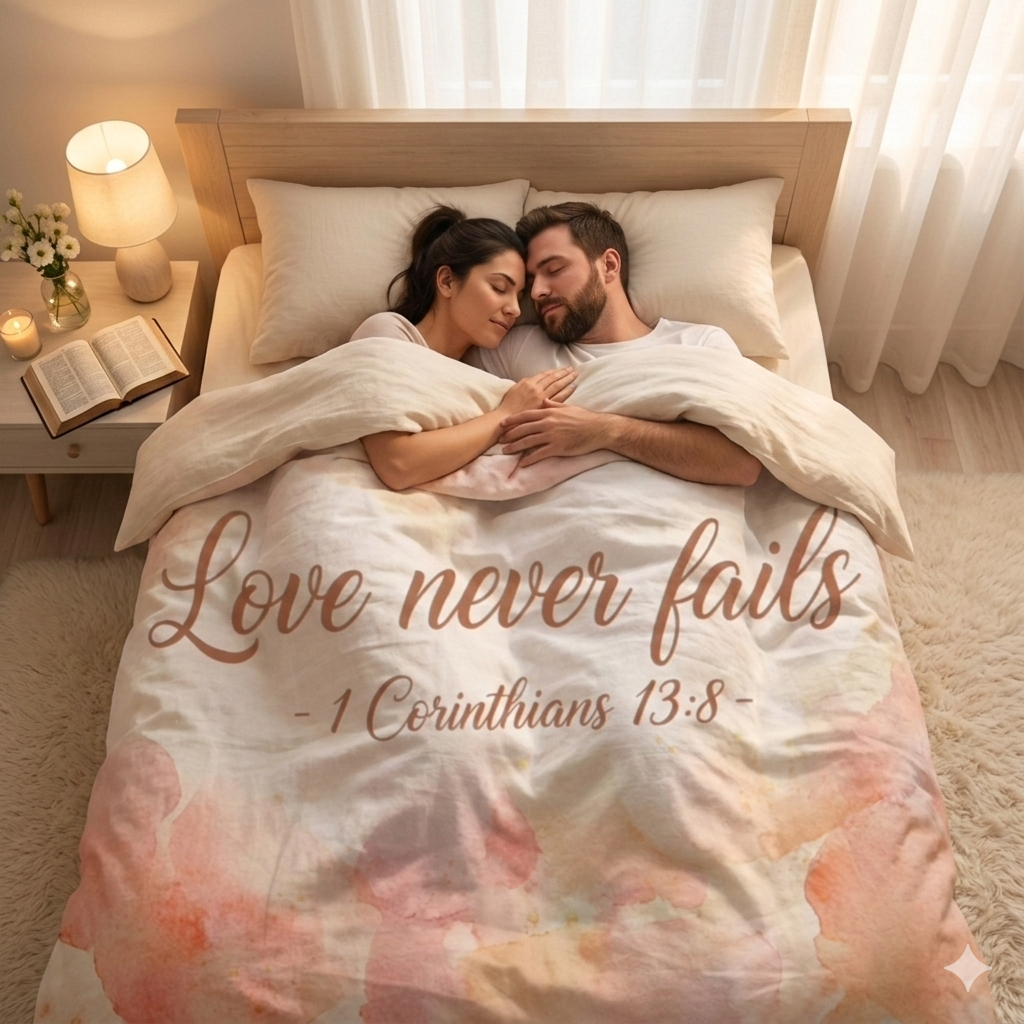 Love Never Fails Duvet Cover – Bible Quote Microfiber Bedding